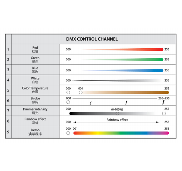 •控制模式:国际标准的DMX512信号